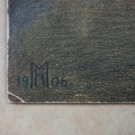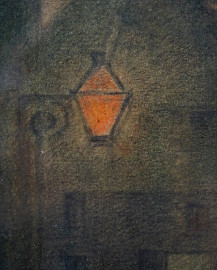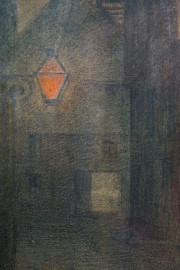 Scorcio urbano, pastello su carta, siglato e datato in basso a sinistra, cm 20x10, entro cornice