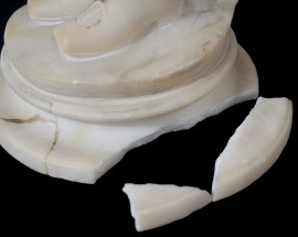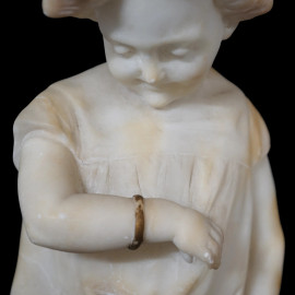 Scultura in alabastro rappresentante una bambina, XIX secolo, cm h 31 (difetti, base rotta)