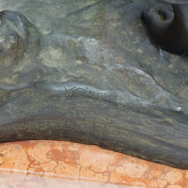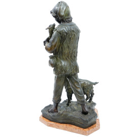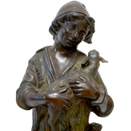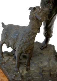 Scultura in bronzo rappresentante un pastorello, firmata V. Cinque, base in marmo, altezza cm 76