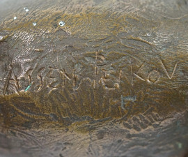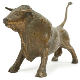 Scultura in bronzo rappresentante un toro, firmato Assen Peikov, cm 15x25,5