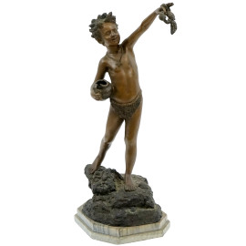 Scultura in bronzo rappresentante un venditore di granchi, firmata G. d. Martino, base in marmo, altezza cm 55