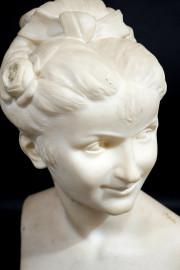 Scultura in marmo raffigurante un busto femminile,firmata R. Battelli, altezza cm 45