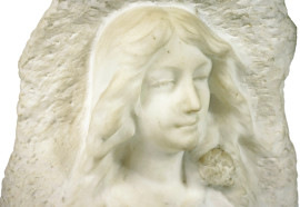Scultura in marmo rappresentante un busto femminile, firmata Bistolfi, altezza cm 39