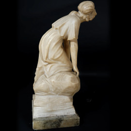Scultura in marmo rappresentante una fanciulla, firmata Hary, altezza cm 54