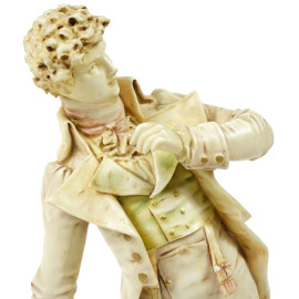 Scultura in porcellana policroma rappresentante un gentiluomo in abiti settecenteschi, Austria, Amphora Marke RSTK, inizi XX secolo, altezza cm 36