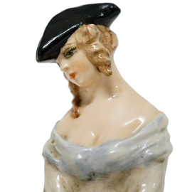 Scultura in porcellana policroma rappresentante una fanciulla con cane, firmato G. Cacciapuoti, altezza cm 17