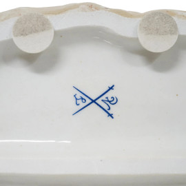 Scultura in porcellana policroma rappresentante una fanciulla con colombe, XX secolo, cm 15x18