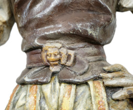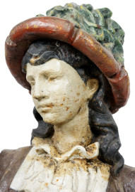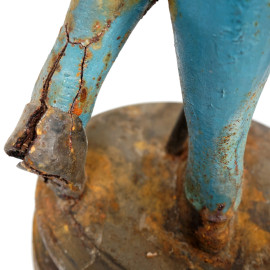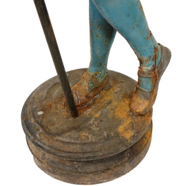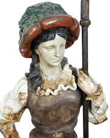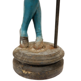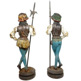 Sculture in ghisa dipinta rappresentanti una coppia di alabardieri, prima metà del XX secolo, altezza cm 158 (difetti)