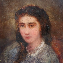 Scuola italiana del XIX secolo, Ritratto di ragazza, olio su tavoletta, cm 18,5x12, entro cornice