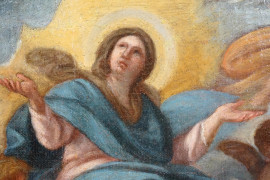 Scuola napoletana del XVIII secolo, Immacolata Concezione, olio su tela, cm 26,8x22,5, entro cornice Salvator Rosa