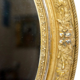 Specchio in legno intagliato e dorato di forma ovale, XX secolo, cm 41x36