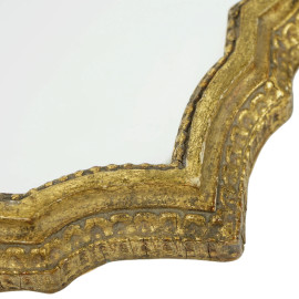 Specchio quadrilobato in legno intagliato e dorato, XX secolo, ingombro cm 42x42
