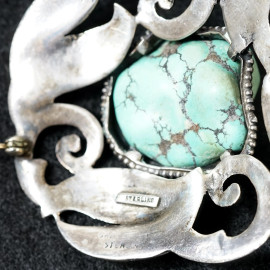 Spilla in argento sterling con turchese, cm 5x5,5, peso gr 27