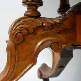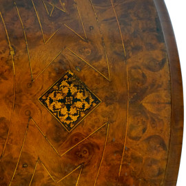 Tavolo ovale in legno impiallacciato, prima metà del XX secolo, cm h 75x102x135, (difetti)