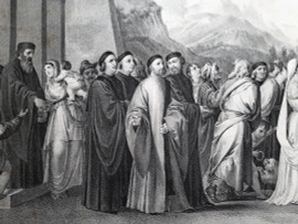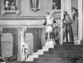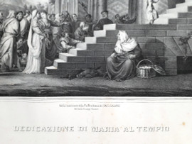 Tiziano Vecellio e Cecilio Rizzardini, Dedicazione di Maria al Tempio, grande grafica su carta della prima metà dell’800, immagine in eccellenti condizioni, qualche fioritura ai bordi, cm 68x98
