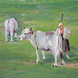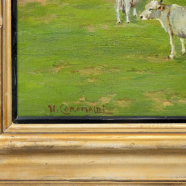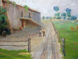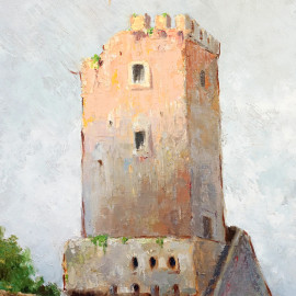 Torre salaria, olio su tela, firmato, cm 80x80, entro cornice