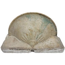 Vasca per fontana in marmo a mezzaluna, XX secolo, cm 23x61