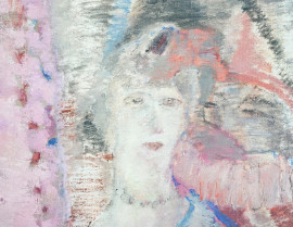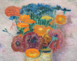 Vaso di fiori con Pierrot e Colombina, olio su tela, XX secolo, cm 65x80