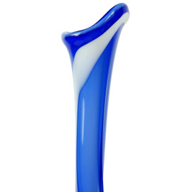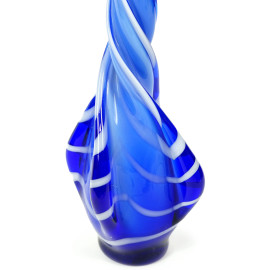 Vaso in vetro blu e bianco con lungo collo spiraliforme, cm h 65, XX secolo.
