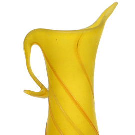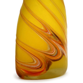Vaso in vetro satinato, Murano, XX secolo, con lavorazione nei toni del giallo, dell'arancio e del bianco, cm h 32,5