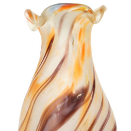Vaso in vetro satinato, Murano, XX secolo, con lavorazione nei toni del viola, dell'arancio e del bianco, cm h 33