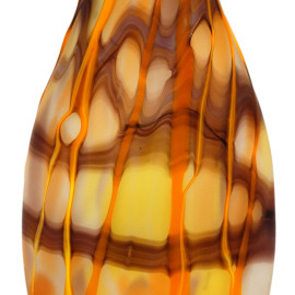 Vaso in vetro satinato, Murano, XX secolo, con lavorazione nei toni dell'arancio, cm h 29