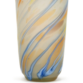 Vaso in vetro satinato, Murano, XX secolo, con lavorazione nei toni dell'azzurro, dell'arancio e del giallo, cm h 30,5