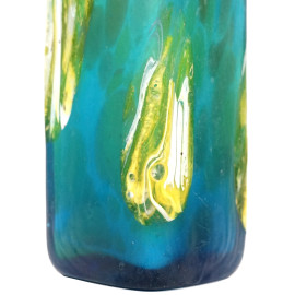 Vaso in vetro satinato, Murano, XX secolo, lavorazione nei toni del blu e del verde, cm h 30
