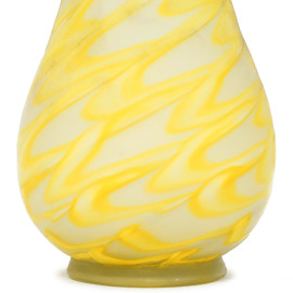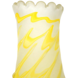 Vaso in vetro satinato, Murano, XX secolo, lavorazione nei toni del giallo, collo allungato con bordo smerlato, cm h 34