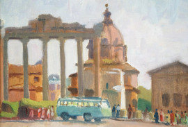 Veduta dei Fori Imperiali, olio su cartone telato, cm 40x50, firmato, entro cornice