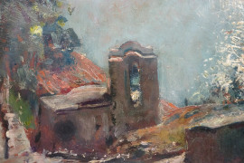 Veduta della costiera, olio su cartone, XX secolo, cm 23x31, entro cornice