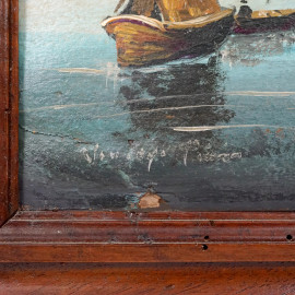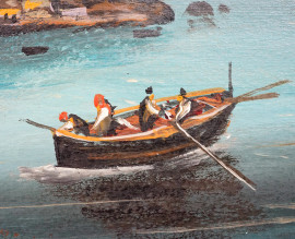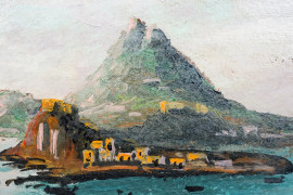 Veduta dell'isola di Ponza, olio su cartone, XX secolo, cm 32,2x23,5, entro cornice