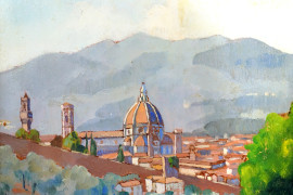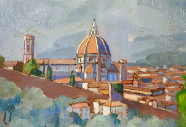 Veduta di Firenze, olio su cartone, firmato, cm 40x30, entro cornice