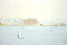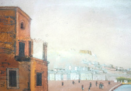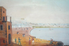 Veduta di Posillipo, gouache su carta, firmata e datata in basso a destra G. Giusti 1901, cm 27x39,5, entro cornice