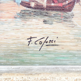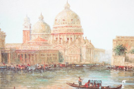 Veduta di Venezia, olio su tela, firmato in basso a sinistra, cm 50x60, entro cornice