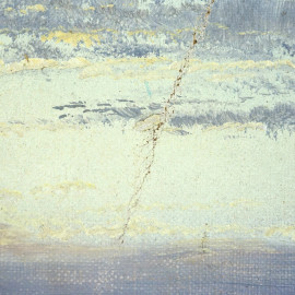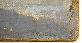 Veduta montana, olio su tela riportata su cartone, firmato in basso a destra, cm 13x25