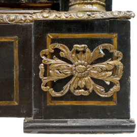 Vetrina stile Boulle in legno ebanizzato con intarsi e applicazioni in metallo dorato, due ante, fine XIX secolo, cm h 204x125x44, (difetti)