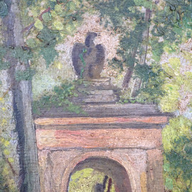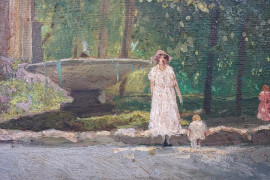 Villa Borghese, olio su tavola, cm 29x48, firmato, entro cornice