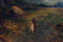 Vittorio Avondo (1836-1910) attr.a, Paesaggio con figure, olio su tela, cm 61x92, entro cornice.
