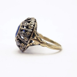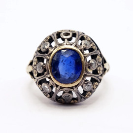 Anello in oro giallo basso, argento, zaffiro e brillantini, misura n. 10, peso gr. 4,8, (mancante un brillantino)