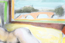 Sola sognava, litografia colorata a mano, cm 35x45, entro cornice.