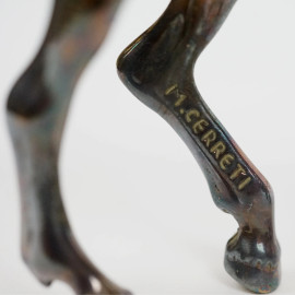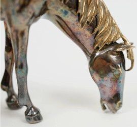 Cavalla con puledro, due sculture in argento con criniere in metallo, misure max cm 7,5x12, firmate M.Cerreti, peso netto argento gr.180, (mancanti criniera e coda del puledro)
