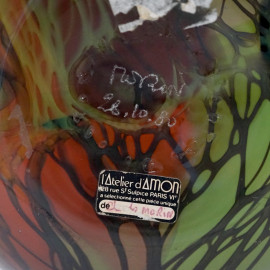 Claude Morin (1932-2021), Vaso in vetro soffiato, cm 16, firmato sotto la base, recante etichetta Atelier d'Amon