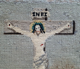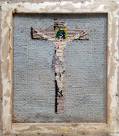 Crocifisso, antico ricamo a tombolo, cm 47x42