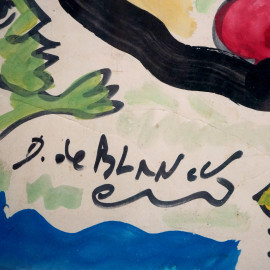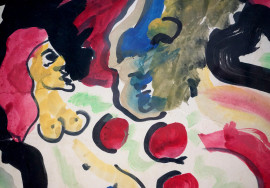 Senza titolo, tecnica mista su carta, cm 64x32, entro cornice, (difetti).