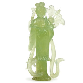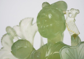 Geisha, scultura in giadeite, cm h 21, Cina, XX secolo.