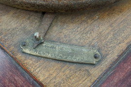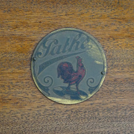 Grammofono (Pathefono n. 27) a tromba in ottone, marca Pathè, cm h 82x40x40