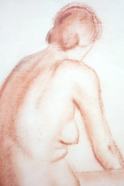 Nudo di donna, sanguigna su carta, cm 50x39,5, XX secolo, entro cornice.