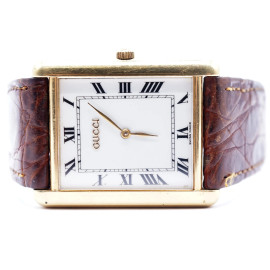 Orologio da polso Gucci al quarzo, quadrante e cassa rettangolare in oro 750