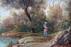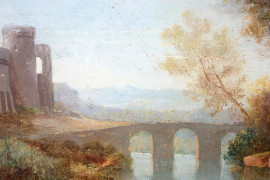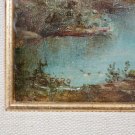Paesaggio fluviale, olio su cartone, cm 18x24, firmato Cafaro, entro cornice